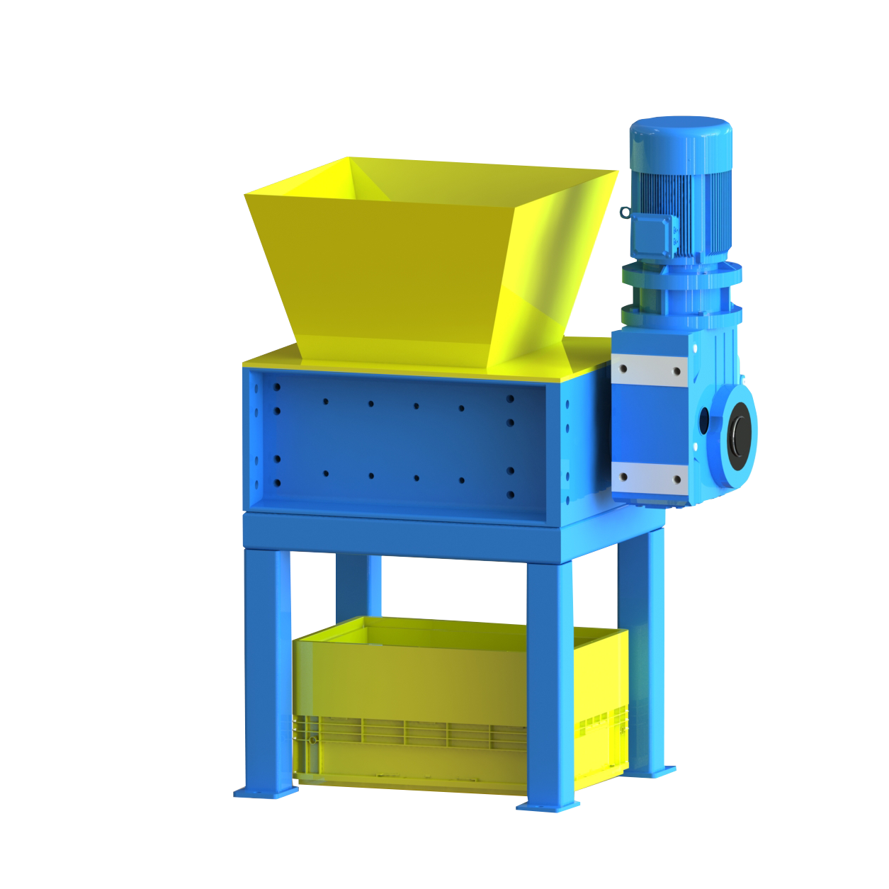 The Compact Single-Motor Dual Shaft Shredder is designed for users with limited workspace and moderate shredding needs. It features a vertical motor design, significantly reducing the installation footprint. Equipped with high-strength alloy blades customizable to different materials or requirements. An optional collection bin with swivel casters allows easy collection and mobility.